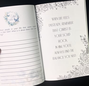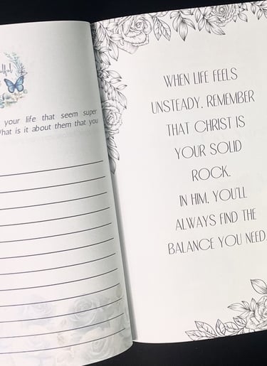 Life can feel overwhelming and uncertain, but you don't have to walk through it alone. "Finding Our Balance in Christ" is here to help you reconnect with what matters most - your faith in Jesus. Too many times, we let our faith fall onto the back burner, but working through this journal can help you battle that human tendency. Through selected scripture, heartfelt stories, thoughtful questions, and journaling prompts, this devotional journal for women offers a gentle guide to finding peace and purpose in Christ. Whether you're diving in on your own or with a group, this is your chance to slow down, reflect, and discover the unshakable balance that only comes from trusting Him.