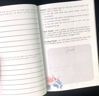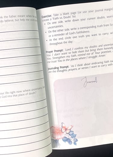When doubt clouds your heart and uncertainty unsettles your steps, faith can feel fragile. Yet even in the middle of questions and unexpected turns, God remains steady, faithful and near. "Overcoming Doubts & Uncertainty" is a 5-day devotional journal created to guide you back to the truth of God's Word. Through heartfelt reflections, scripture, guided journaling and prayer, you'll be encouraged to let go of control, embrace God's higher ways, and rest in the strength of His promises. This journal is your gentle companion for seasons of uncertainty, offering space to process, pray, and rediscover the unshakable hope found in Christ.