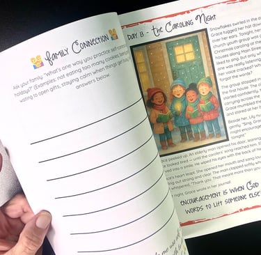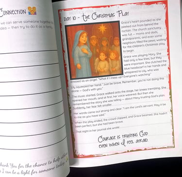 My Christmas Journal invites her to walk alongside Grace, a young girl discovering lessons of kindness, courage, patience, joy, and the greatest gift of all - Jesus. Each day brings: